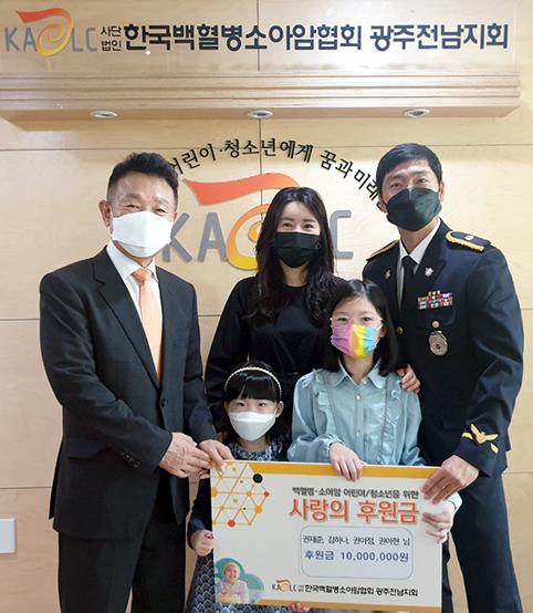 한국백혈병소아암협회 광주전남지회는 LG의인상을 수상한 권재준 경위가 상금 1000만원을 기부했다고 28일 밝혔다. (사진=한국백혈병소아암협회 광주전남지회).