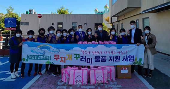 이번 행사는 지난 8월 홀로 사는 어르신들을 위한 생활용품세트 후원에 이은 두 번째 ‘덕연형 권분운동 무지개 꾸러미’사업으로, 조손·한부모 가정과 장애인 가구 위주로 지원했다. 가정환경에 맞춰 조손 및 한부모세대의 학생을 위한 학용품 세트와 장애로 인해 생활이 불편한 대상자에게 겨울을 따뜻하게 지낼 수 있도록 온열 매트 등으로 꾸러미 물품을 구성해 직접 가정 방문 후 위문 활동을 펼쳤다.