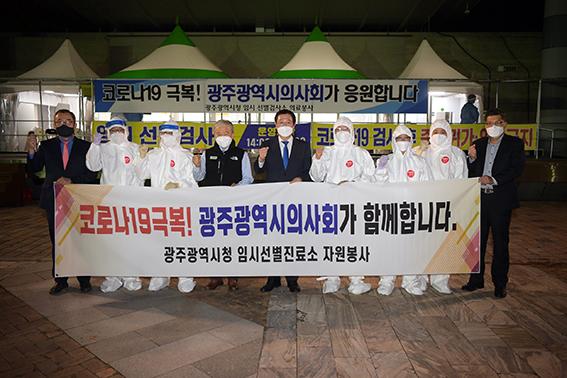 광주시는 광주시의사회가 지난달 28일 시청 야외음악당 선별검사소에서 의료 자원봉사 활동에 나섰다고 밝혔다.