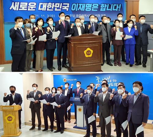 더불어민주당 소속 광주·전남 시·도의원들이 이재명 후보를 중심으로 원팀을 구성해 내년 대선 승리를 위한 바람몰이 나섰다.