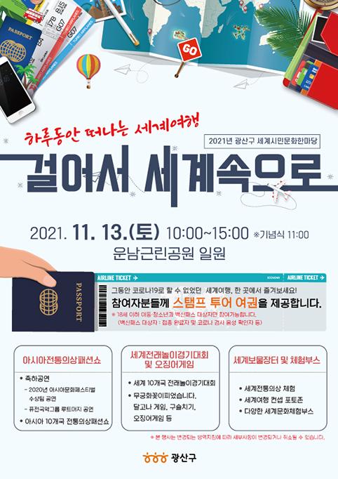'하루 동안 떠나는 세계여행, 걸어서 세계 속으로'를 테마로 코로나19로 인해 세계 문화를 접하고 즐길 수 있는 기회가 적었던 시민에게 활력을 제공하고, 내·외국인이 함께 어울리며 화합하는 장이다.