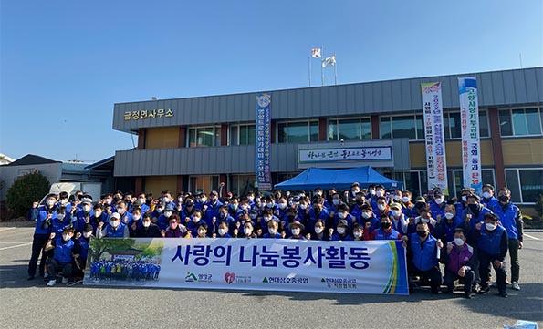 영암군 금정면은 6일 “현대삼호중공업직장협의회, 영암군 이장단협의회 회원 등 120여 명이 참여한 가운데 대봉감 수확 일손돕기 및 공동구매, 집 고쳐주기 봉사활동을 실시했다”고 밝혔다.