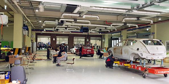 미래자동차학과는 자율주행자동차, 전기자동차 분야 최첨단 실습실과 자동차 친환경 도장, 차체 판금 실습실을 보유하고 있다.