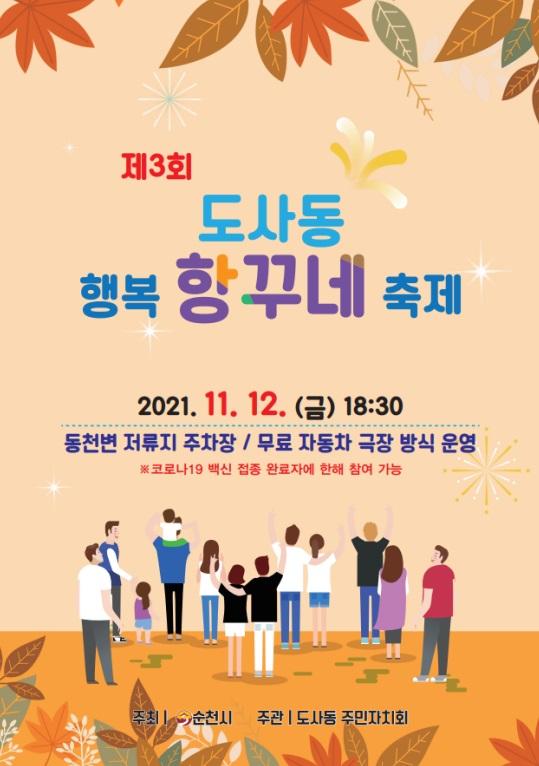 순천시 도사동 주민자치회는 지난해 코로나 19로 중단했던 ‘도사동 항꾸네 축제’를 오는 12일, 순천만 국가정원 맞은편에 위치한 동천변 저류지 주차장 일원에서 진행한다고 밝혔다.