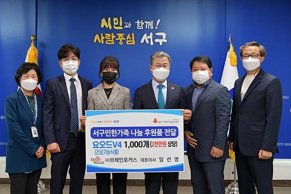 이번 후원품은 서구 관내 종합사회복지관 5개소에 각 200개씩 배분되어 복지관을 이용하는 관내 취약계층에게 지원될 예정이다.