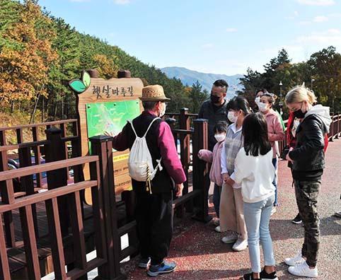 광양생태문화체험은 ‘백운산 치유의 숲체험’과 ‘광양목재문화체험’으로 코로나19 상황을 고려하여 도토리팀 6가족, 단풍잎팀 6가족으로 각각 나누어 오전과 오후로 교차체험을 진행했다.
