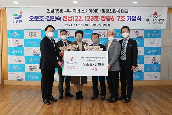 장흥군은 지난 15일 군청 상황실에서 장흥산업(주) 오준호, 김민숙 대표 부부의 아너 소사이어티 신규 가입식을 가졌다.