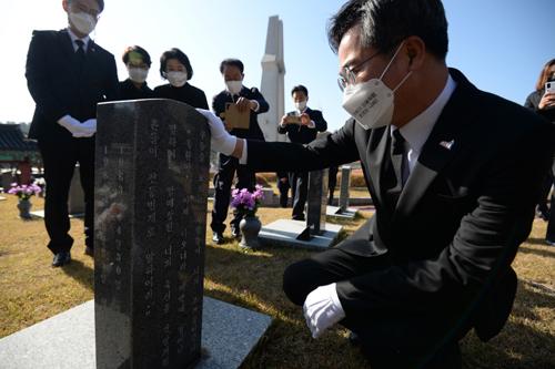 김 전 부총리는 헌화·분향 뒤 행방 불명자 열사 묘지를 참배한 뒤 제 2묘역에 들러 희생자 유족을 만나 위로했다.