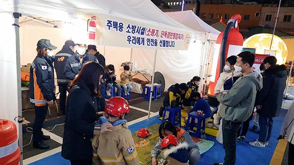이날 행사는 소방공무원 및 의용소방대 등이 참여한 가운데 ▲주택용소방시설 의무설치와 노후소화기 교체 및 폐기 안내 ▲겨울철 화재 3대 전기용품 안전사용 안내 홍보 ▲심폐소생술 교육 및 실습 ▲119안심콜 서비스 홍보 및 현장등록 ▲어린이 소방관 체험(방화복 착용 체험) ▲홍보물품 배부 및 기념사진 촬영, 인화 제공으로 진행됐다. /김도기 기자