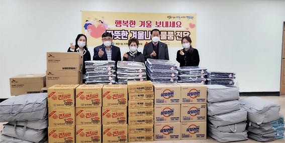 이번에 지원하는 겨울나기 용품은 전기장판 35개, 겨울 이불 20개, 전자레인지 3개, 멀티쿠커 5개, 라면 85박스, 사골곰탕 50박스 등 월동용품과 취사도구다.