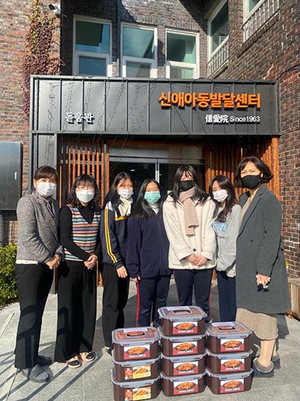 광주 서진여고가 지난 2일 ‘김장김치 나눔 행사’를 통해 직접 담근 김장김치를 아동복지시설 ‘신애원’에 전달했다.