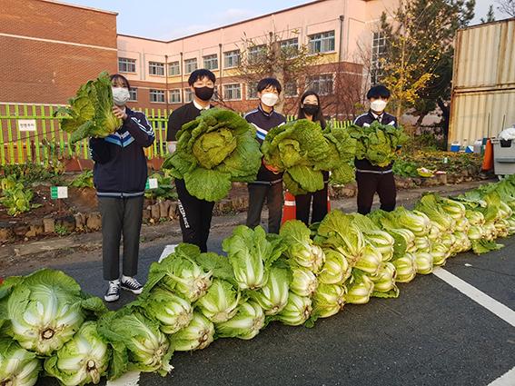 지난 3일 동아리 학생들은 학교 내 친환경 텃밭에서 재배한 배추, 무 등 많은 야채를 수확해 광산구 송광종합사회복지관에 기부하며 나눔 운동에 동참했다. 기부된 야채는 추후 소년소녀가장, 독고노인, 저소득층가정 등에 전달될 예정이다.