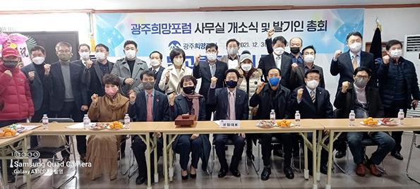 광주희망포럼은 지난 3일 오후 광주시 서구 농성동 사무실에서 공동대표와 회원 등 100여 명 참석한 가운데 발기인 총회 및 출범식을 갖고 포럼 정관, 임원선출, 향후 사업 활동 등을 확정해 의결했다.