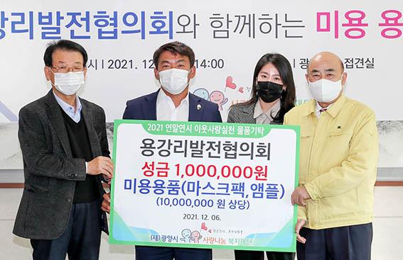 광양시 광양읍 용강리발전협의회는 성금 100만 원과 1000만 원 상당 화장품을 지난 6일 (재)광양시사랑나눔복지재단에 기탁했다.