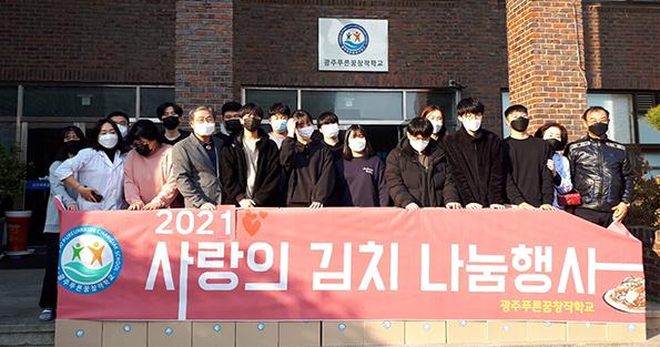 광주푸른꿈창작학교는 ‘전라도 김장 담그기 체험’을 통해 담근 김장김치를 재능기부센터와 연계해 주변 어려운 이웃들에게 전달하며 따뜻한 나눔 문화 확산에 앞장섰다.