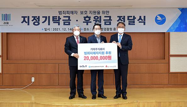기탁금 전달식에는 문남귀 기아 오토랜드 광주 1공장장과 박찬호 광주지검장, 윤보선 광주전남범죄피해자지원센터 이사장 등이 함께했다.