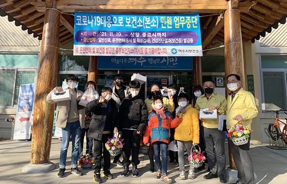 도움반 학생과 통합반 학생이 함께 재배한 당근으로 만든 머핀과 건강 주스, 그리고 원예 공예 시간에 정성껏 제작한 비누 꽃바구니를 코로나 방역에 애쓰는 여수보건소에 전달하여 뜻깊은 나눔을 실천했다.