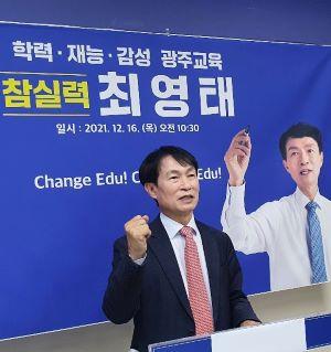최영태 전 전남대 인문대학장이 광주교육감 출마를 선언했다. 최 전 인문대학장은 진보진영의 결속을 강조하며 교육감 선거의 승리를 위해서는 입지자 간 단일화가 필요하다는 입장을 피력했다.
