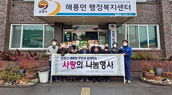 율촌·해룡산단협의회는 순천시 해룡면행정복지센터에 해룡면 주민을 위한 ‘사랑의 선물’을 전달했다.
