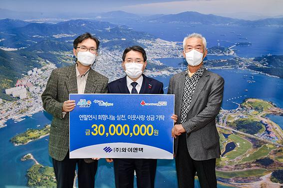 여수산단 내 ㈜와이엔텍이 이웃사랑 성금 3000만 원과 여수시인재육성장학회 장학금 3억 원을 여수시에 기탁했다.