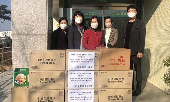 전남도나주교육지원청은 연말연시를 맞아 관내 아동복지(보육)시설를 방문해 거주 학생들에게 필요한 물품을 전달하고, 학생과 시설 종사자들을 격려하는 등 따뜻한 온정의 손길을 전했다.