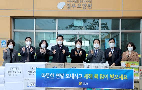 전남도는 30일 연말연시를 맞아 영암 ‘정우 요양원’을 방문해 이용자와 종사자들을 위문·격려하고 위문품을 전달했다.