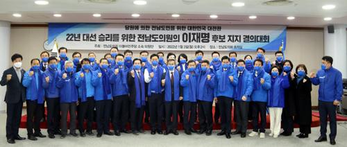 3일 전남도의회에서 열린 더불어민주당 전남도당과 전남도의원들의 이재명 후보 대선 승리 결의대회. /전남도당 제공