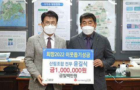 성금을 기탁한 윤길식 전무는 지난 1992년부터 약 30여 년간 강진군 산림조합에 근무했으며, 2009년 양묘장 하우스 설치, 2018년 산림조합 신청사 이전 건립 등 굵직한 프로젝트 수행과 엄정하고 전문성 있는 업무처리로 동료 직원들의 귀감이 됐다.