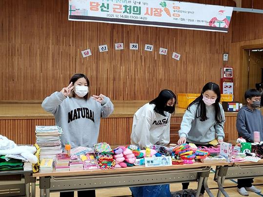 해남 송지초등학교 119명의 학생들은 지난달 14일 ‘단계적 일상회복과 함께 하는 당신 근처의 시장(당근시장: 나눔 바자회)’ 행사에 참여했다.