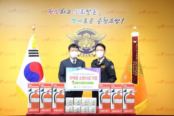 한국전력 순천지사는 12일 순천소방서 소회의실에서 하수철 순천소방서장, 안오근 한국전력 순천지사장 등 10여명이 참석한 가운데, 주택용소방시설 100세트를 순천소방서에 전달했다.