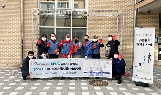 SNNC 마음나누리 방역봉사단은 이종임 위원장, 김일곤 협의회 대표를 중심으로 활동하며, 위생 상태가 취약한 장애인가정의 화장실, 베란다, 옷장, 창고까지 방역소독을 진행하고, 외부에서 벌레 유입이 우려되는 곳에 벌레 퇴치약을 부착해 쾌적한 주거 환경 만들기에 도움을 줬다.