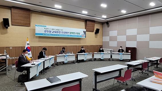 경기대학교 하봉운 교수, 광주시 김광란 의원, 광주대 최재영 교수, 광주마을교육공동체 김희련 대표, 광주시교육청 행정예산과 박준수 과장이 토론자로 참석해 ▲학교 공간 기능의 하이브리드化 대응 방안 ▲거점+캠퍼스형 학교운영 방안 ▲고교 학점제 및 화상수업 등에 능동적 대응이 가능한 유연적 공간 운영 방안 등 다각적인 의견을 제시했다.