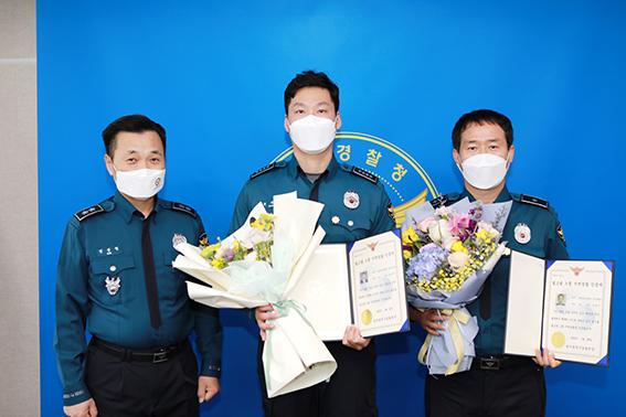 김준철 광주경찰청장(왼쪽), 이혜주 경위(오른쪽)·봉세창 경사 /광주경찰청 제공