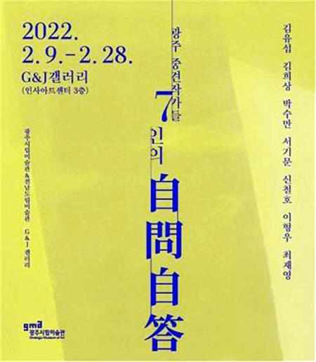 광주시립미술관은 9일부터 28일까지 서울 인사동 G&J갤러리에서 기획전 광주 중견작가 ‘7인의 자문자답’전이 선보인다고 밝혔다.