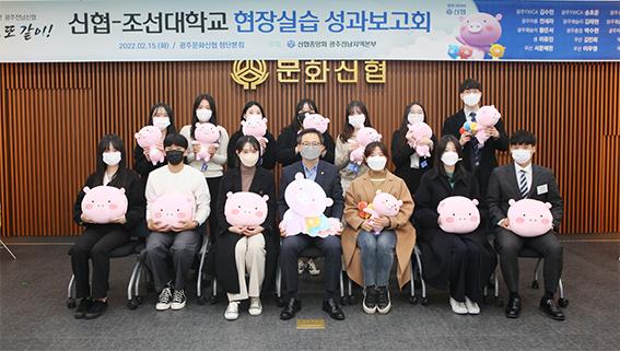 신협중앙회 광주전남지역본부는 최근 ‘신협-조선대 현장실습 성과보고회’를 갖고 취업 특강, 감사편지 영상, 소감 발표, 선물 전달 등의 행사를 진행했다.