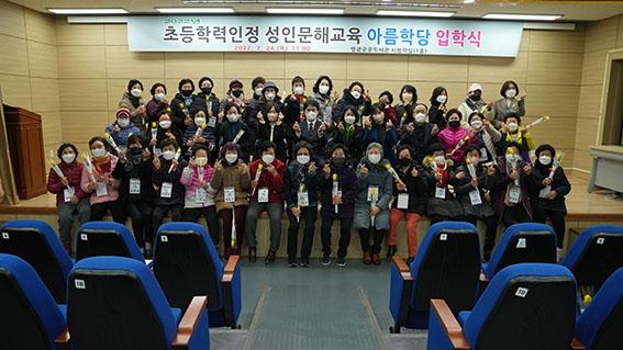 영광공공도서관은 24일 오전 11시 초등학력인정 성인문해교육 \'아름학당\' 입학식을 개최했다.