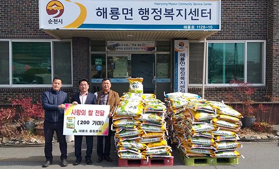 기탁한 물품은 총 1200만원 상당의 쌀 200포(20kg)로 지난 2월 26일 순천 해룡초 총동문회 이·취임식에서 축하 화환 대신 받은 것이다.