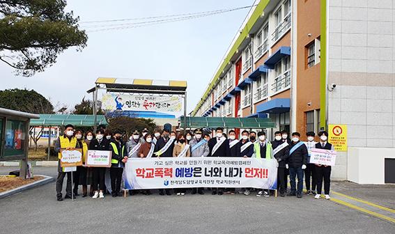 ‘두손잡고 함께하고, 마주보고 웃어보자’ 라는 슬로건으로 담양교육지원청과 담양경찰서, 담양남초·담양중학교 교직원 및 선도부 학생들과 함께한 이번 캠페인에서는 등교하는 학생들에게 홍보물품을 전달해 학교폭력의 위험성과 대처방안에 대해 안내했으며, 코로나19 퇴치를 위한 방역지침 준수도 함께 홍보했다.