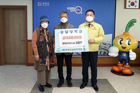 무안군은 최근 행복한 고구마 김용주 대표가 승달장학금 1000만 원을 무안군승달장학회에 기탁했다고 전했다.