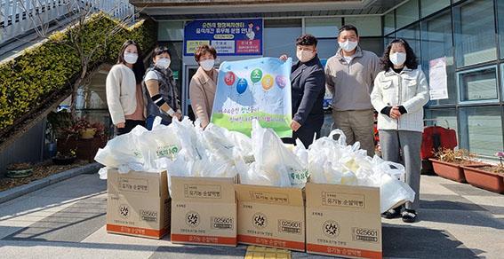 순천시 청년 김종효 씨(청춘창고 1기 대표)와 여수시 소소한 봉사단체(이하 여수 소봉단)가 지난 3일 순천시 조곡동에 유기농 과자 300개(100만원 상당)를 기부했다.