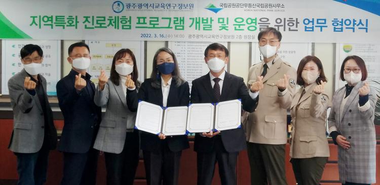 광주교육연구정보원이 16일 국립공원공단 무등산국립공원사무소와 ‘지역특화 진로체험 프로그램’ 활성화를 위한 업무협약(MOU)을 체결했다.