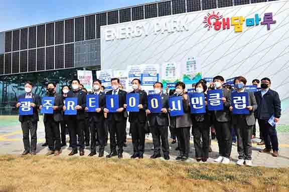 광주시교육청이 22일 우리 고장의 에너지자립과 탄소중립 실현을 위해 ‘광주 RE100 시민클럽’(이하 RE100클럽) 참여 기관들과 다자간 업무협약을 체결했다.