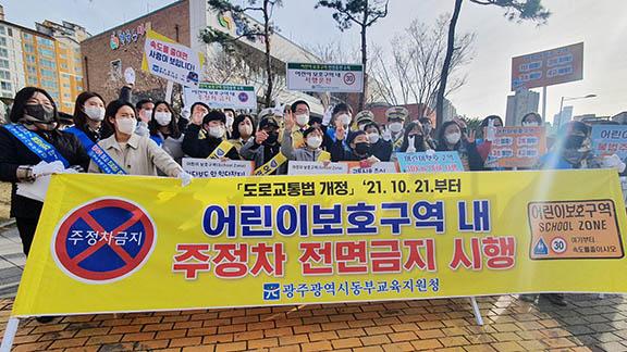 광주동부교육지원청이 지난 28일 유관기관과 합동으로 신용동 건국초 앞에서 교통법규 준수 및 안전한 등굣길 조성을 위한 교통안전 캠페인을 실시했다.