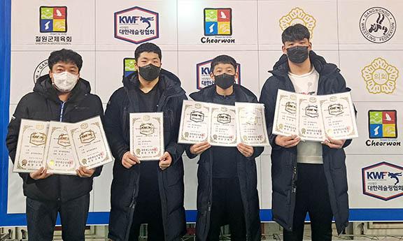 22일 남중부 그레코로만형 51kg 경기에 참가한 3학년 박인성 선수는 1회전부터 결승까지 화려한 기술로 상대편을 압도했다. 준결승전에서 맞붙은 강원체중 선수를 상대로 10대0 테크니컬폴승으로 제압했고 결승은 사동중 기권으로 금메달을 차지했다.