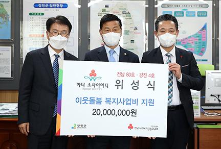 지난달 30일 위성식 강진군의회 의장이 이웃돌봄 복지사업비로 사회복지공동모금회에 2천만 원을 기탁했다.