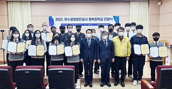 공사에 따르면, 이날 장학금 전달식을 시작으로 올해 교육지원청의 추천을 받아 여수·광양지역 소재 중·고등학생 100여 명에게 총 5000여만 원의 장학금을 전달할 계획이다.