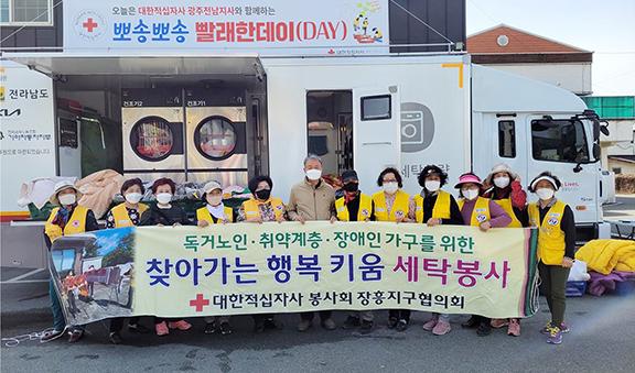 대한적십자사 장흥지구협의회 관산읍 적십자 봉사자들이 지역의 어려운 이웃들을 위해 이불빨래 돕기에 나섰다.