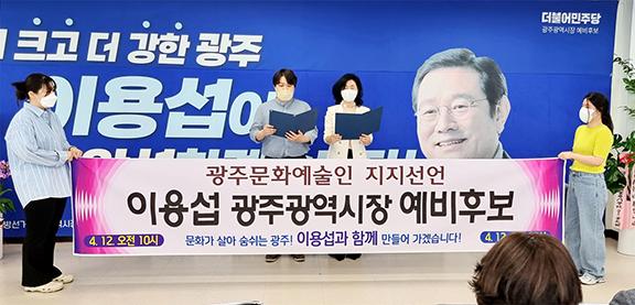 이어 \"이러한 어려움을 해결하기 위해서는 뛰어난 행정력과 경험을 가진 사람이 필요하며 문화예술 활성화에 대한 의지로 문화 예술인들의 어려움을 잘 이해하고 안정적인 삶을 찾아줄 적임자는 이용섭 예비후보라며 광주시민들이 현명한 선택을 해 줄 것\"을 호소했다.