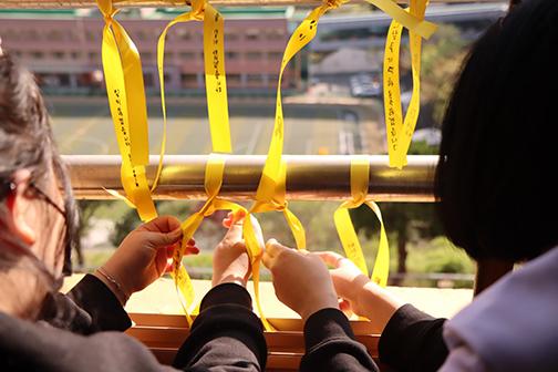 학생부장 이덕현 교사는 행사 마지막에 “세월호 참사로 희생된 304명의 모든 분의 안식을 바라고 가족분들에게는 작게나마 위안이 됐길 기도한다”고 말했다.