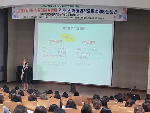 광주교육연구정보원이 21일 오후 2시 학교시설지원단 대강당에서 학부모, 시민 등 500여 명이 참석한 가운데 ‘2022 학부모 진로교육 아카데미’를 개최했다.